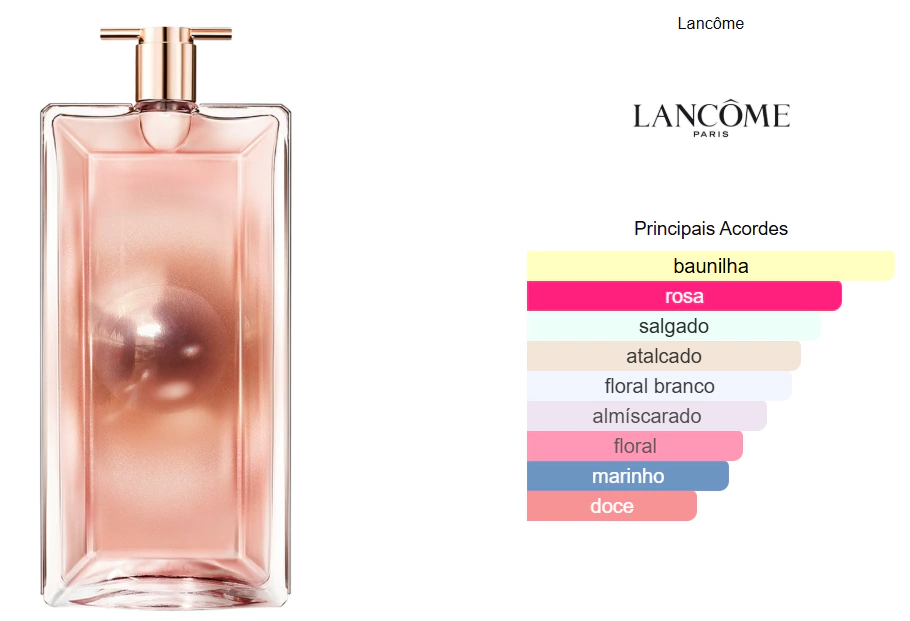 O Idôle Aura Lancôme Eau de Parfum Lumineuse é a fragrância da mulher que brilha naturalmente. Luminoso, envolvente e moderno, ele combina a delicadeza da rosa com a cremosidade viciante da baunilha salgada, criando um perfume feminino sofisticado e marcante.
